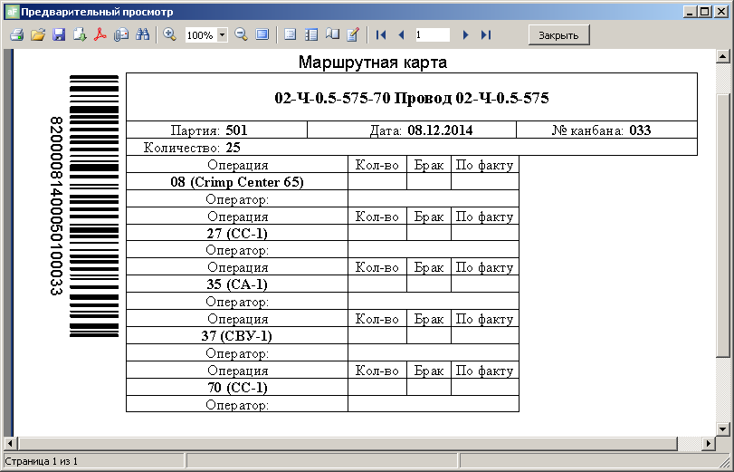 Маркировка ОУ с помощью ШК идентификаторов в виде маршрутного или сопроводительного листа выполняется для каждой ТрП. Идентификаторы распечатываются на лазерном принтере (маршрутные и сопроводительные листы) или на термотрансферном принтере (самоклеящиеся этикетки для индивидуальной маркировки изделий и упаковок) |