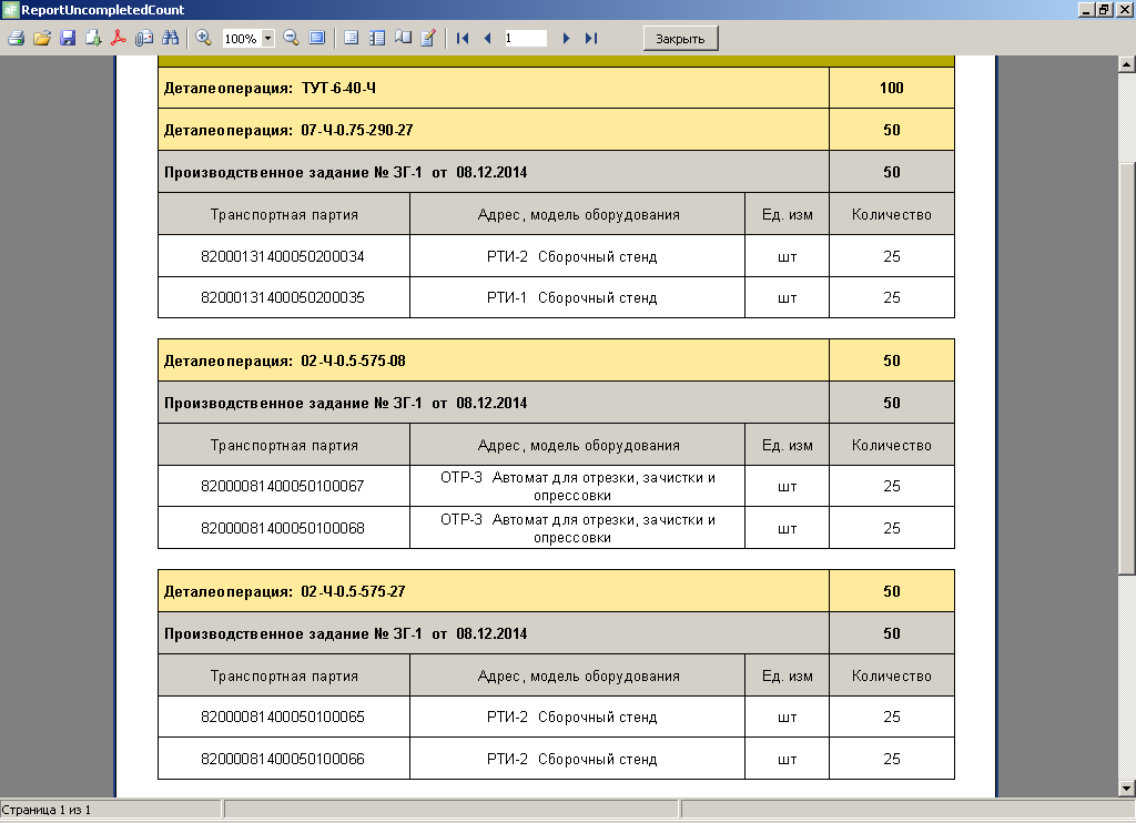Отчёты по незавершённому производству, прослеживаемости, остаткам ОУ по адресам, фактическая выработка работников |