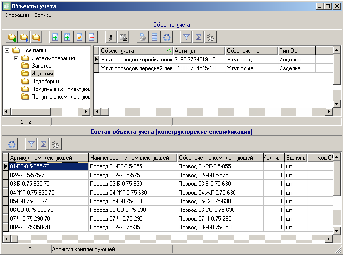 Объекты учёта (ОУ) в АИ-ПРО это - готовые изделия, упаковки с готовыми изделиями, незавершённое производство, покупные комплектующие, основные и вспомогательные материалы, и пр. Состав ОУ определяется конструкторскими спецификациями любой степенью вложенности. Для каждого ОУ может быть использовано более одной единицы измерения. |