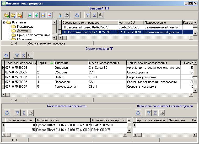 Маршрут изготовления определяет последовательность выполнения технологических операций на определённых моделях оборудования. Есть возможность для каждой операции назначить нормативную трудоёмкость, указать возможность групповой обработки, размер транспортной партии, тип ШК идентификатора, ввести дополнительные пользовательские характеристики и пр. Для каждой операции на основании конструкторской спецификации и справочника ОУ, формируется пооперационная комплектовочная ведомость и ведомость возможных заменителей. |