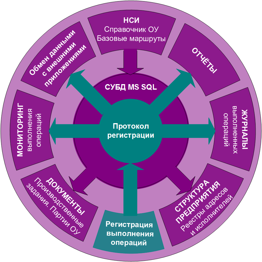 Цель внедрения:Производственный учёт (серийный и индивидуальный). Прослеживаемость (история) изготовления от сырья до готовой продукции. Мониторинг выполнения технологических операций в режиме реального времени. Сбор и своевременное предоставление достоверной информации в системы верхнего уровня. |